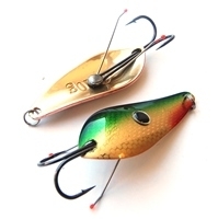 Одна из лучших блесен для ловли щуки. Эту приманку точно можно отнести к классике рыболовных снастей. Блесна работает при разнообразных типах проводки, начиная с равномерной и заканчивая рывковой с большими паузами. Очень хорошо себя проявляет в начале осени. Игра АТОМА размашистая и привлекает рыбу с большого расстояния. Но требует весьма медленной проводки, так как при увеличении скорости может сорваться на вращение. Выполняется в размерах от пятидесяти пяти до семидесяти пяти миллиметров и весом от десяти до двадцати грамм.